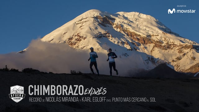 Chimborazo Exprés Karl Egloff and Nicolás Miranda intend to break the record of ascent and descent to Chimborazo. Looking for the top of the colossal volcano and the closest point to the sun, 6,263 meters, in fast mode, light equipment, a distance of 18 kilometers and 2,000 meters of positive slope, is a feat that few mountaineers can do.